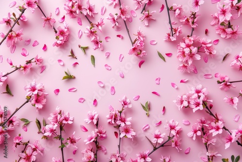 © arttools, Obraz premium Pink Blossom Floral Arrangement on a Light Pink Background