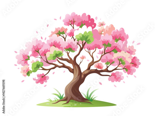 © Robiul, Fototapeta premium Pink Blossom Tree Illustration – Spring Cherry Art on White Background