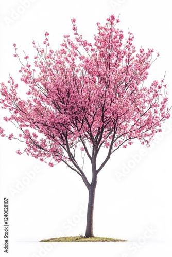 © Duskcraft, Obraz premium Pink blossom tree isolated on white background showcasing spring beauty and delicate petals