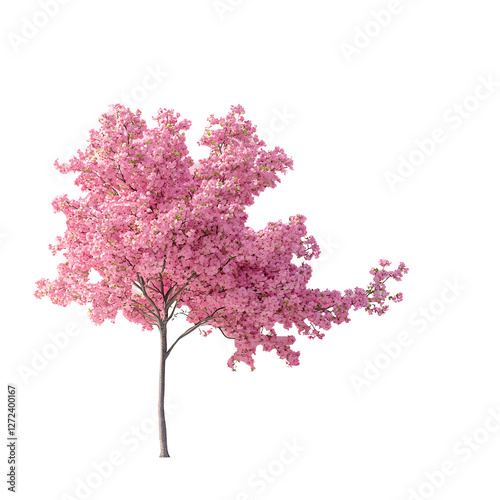 © nature.floor, Obraz premium Pink Blossom Tree Stands Against White and Pink Geometric Wall plus Tree Exhibits Springtime Beauty