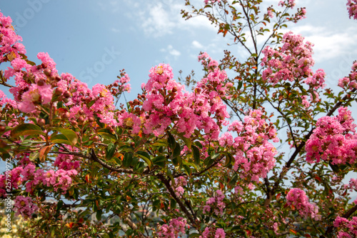 Obraz premium Pink Blossoming Tree Branches with Spring Flowers