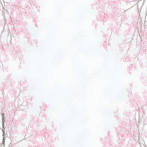 © Siasart, Obraz premium Pink Blossoms Frame a Soft White Background Beautifully and Delicately with Elegance