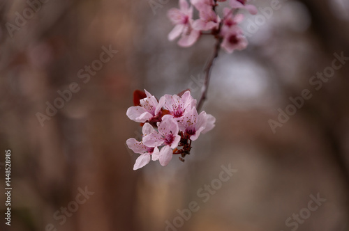 Fototapeta premium Pink blossoms in full bloom on fruit tree in the spring garden