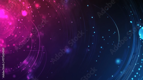 Fototapeta premium Pink, blue, and dark abstract, glowing circles and dots.