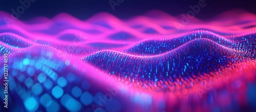 Fototapeta premium Pink & blue digital waves flow over data; tech background; website banner