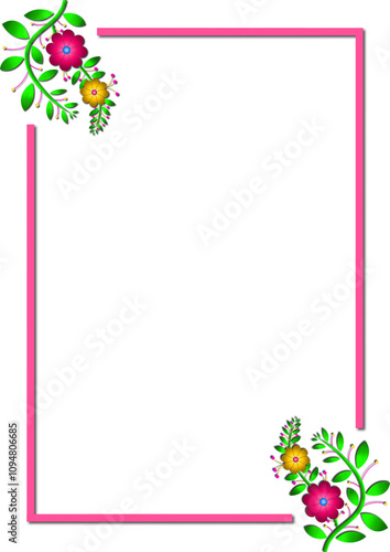 © Aphiradi, Obraz premium pink border frame with flowers and leaf