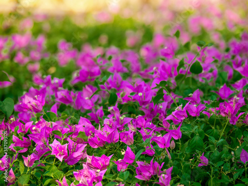 © Wachiraphorn Thongya, Naklejka premium Pink bougainvillea flower with green leaf on tree, Floral background.