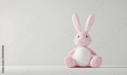 © Maryanto, Obraz premium Pink bunny sitting, white background, Easter, 3D render, greeting card