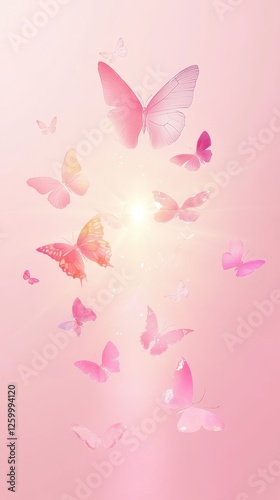 © novian, Fototapeta premium Pink butterflies gracefully fluttering around a radiant light source