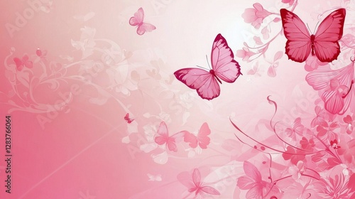 © Chamarn, Fototapeta premium Pink butterfly wallpaper with soft pink background for digital and print use