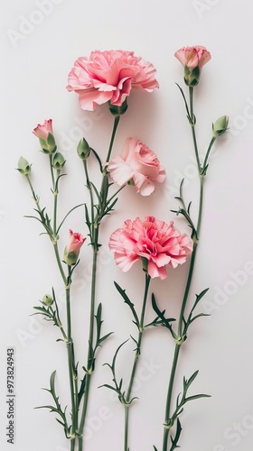 © CREATIVE STOCK, Obraz premium Pink carnations on white background