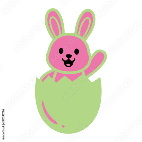 Fototapeta premium Pink Cartoon Bunny Hatching from Egg.