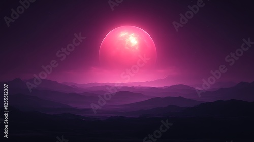 © Eni, Fototapeta premium Pink Celestial Body Over Purple Mountain Range