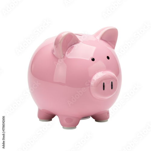 © VectorCO, Obraz premium Pink ceramic piggy bank with transparent background for savings