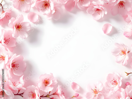 © Obsure, Fototapeta premium Pink Cherry Blossom Background Infused with Soft Prism Light