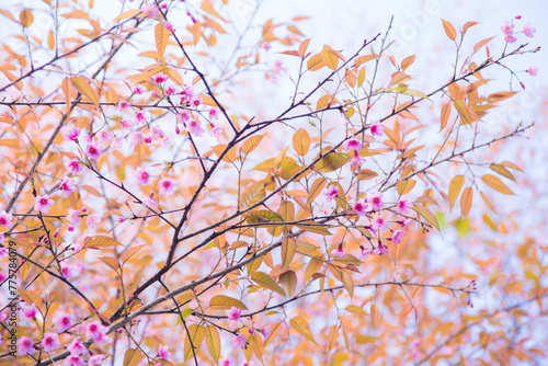 Obraz premium Pink cherry blossom bloomming flower on tree branch