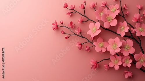 Fototapeta premium Pink cherry blossom branch on soft gradient background