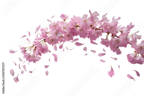 © Hasibnikon, Fototapeta premium Pink cherry blossom branch with falling petals isolated on transparent background