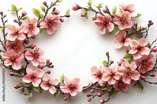 © Georgii, Obraz premium Pink cherry blossom floral oval arrangement over a white background