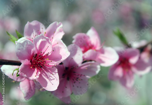 © lkurganskaya, Fototapeta premium pink cherry blossom flower in spring time over blue sky.