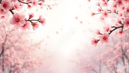 Fototapeta premium Pink Cherry Blossom Flowers in Spring. Concept of beauty, nature, and renewal.