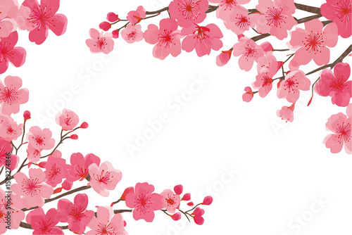 Fototapeta premium Pink Cherry Blossom Frame on Transparent Background, PNG