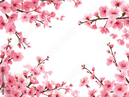 Fototapeta premium Pink Cherry Blossom Frame on Transparent Background, PNG