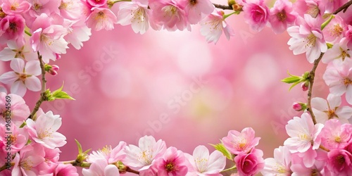 Fototapeta premium Pink Cherry Blossom Frame with Soft Blurred Background, Spring , Cherry Blossoms , Floral Frame
