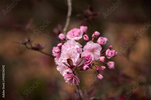 © Cavan, Fototapeta premium pink cherry blossom on brown natural background