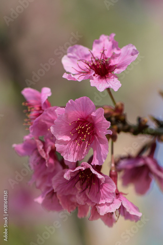 © areeya_ann, Obraz premium Pink cherry blossom on natural color background.