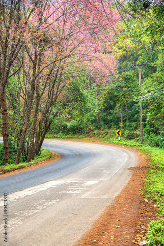 Fototapeta premium pink cherry blossom on the curve road