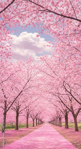 © orch graphic, Fototapeta premium Pink cherry blossom pathway