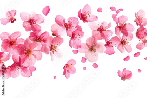 Fototapeta premium Pink cherry blossom petals scattered on white background