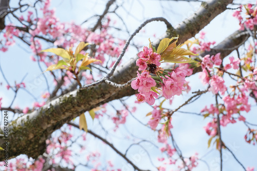 © hikoto, Obraz premium Pink Cherry Blossom / Sakura against blue sky in Japan