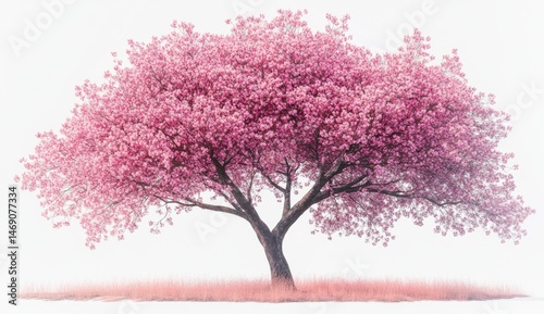 © Yothin, Fototapeta premium Pink Cherry Blossom Tree in Full Bloom Against White Background