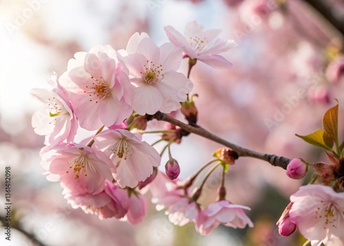 Obraz premium Pink Cherry Blossom Tree in Spring Blooming under a Blue Sky