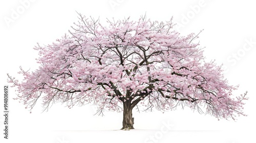 © julio, Fototapeta premium Pink Cherry Blossom Tree on a White Background