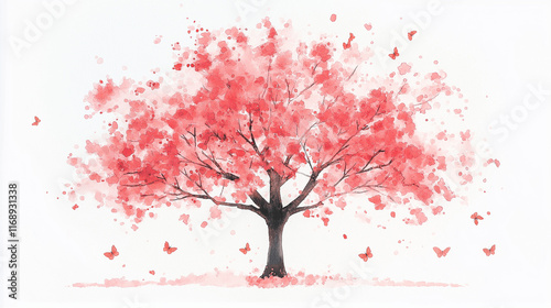 © Wasin Arsasoi, Fototapeta premium Pink Cherry Blossom Tree Watercolor Painting