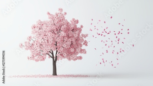 © donchanu, Fototapeta premium Pink Cherry Blossom Tree with Falling Petals Spring Bloom Nature Scene