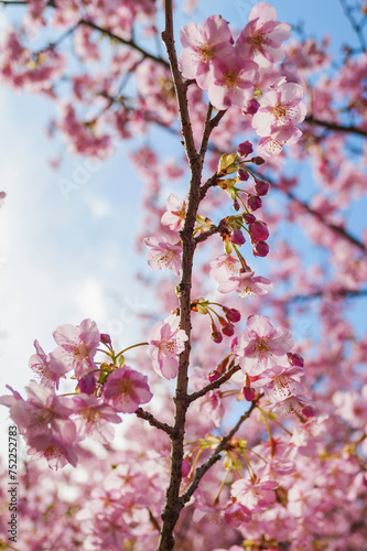 Fototapeta premium Pink cherry blossom under blue sky