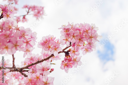 Obraz premium Pink cherry blossom under blue sky