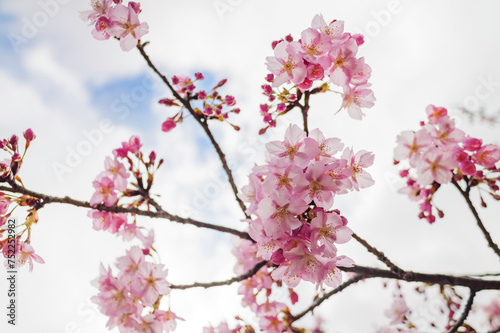 Fototapeta premium Pink cherry blossom under blue sky
