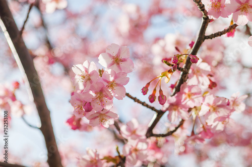 Fototapeta premium Pink cherry blossom under blue sky