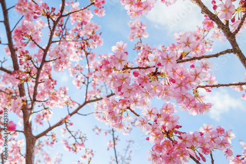 © NOS, Obraz premium Pink cherry blossom under blue sky