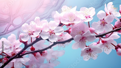 Fototapeta premium Pink cherry blossoms against blue sky