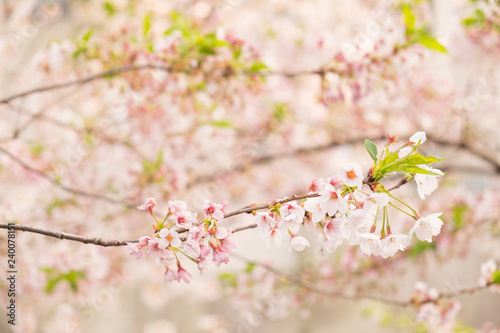 © kazaalong, Obraz premium Pink cherry blossoms are blooming.