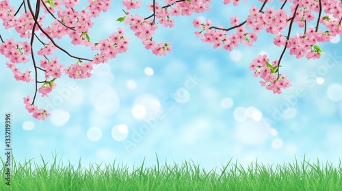 Obraz premium Pink cherry blossoms are blooming in a lush green meadow on an Easter morning...