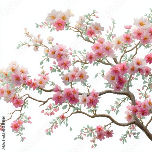 © MdObydulla, Obraz premium Pink cherry blossoms branch detail on white background