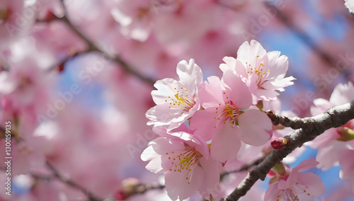 © Astri, Fototapeta premium Pink Cherry Blossoms in Full Bloom on Branches