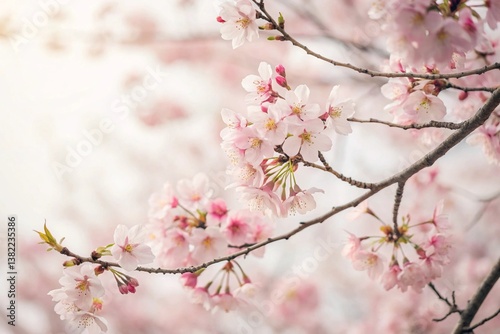 Obraz premium pink cherry blossoms in full bloom on tree branches during spring season with soft pastel background bokeh
